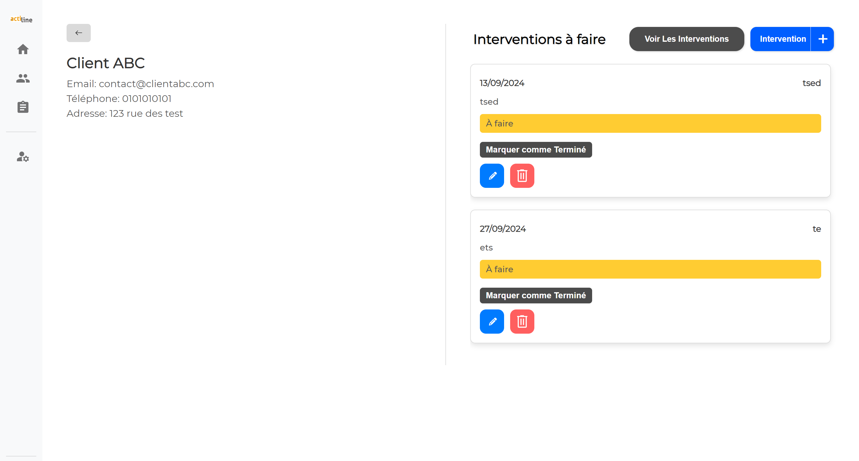 Ce projet consiste à développer un site interne pour l'entreprise, visant à centraliser et faciliter la gestion des interventions effectuées chez les clients. L'objectif principal est de mettre en place une plateforme qui permet aux employés de suivre les dernières interventions réalisées chez chaque client et d'accéder à d'autres informations pertinentes